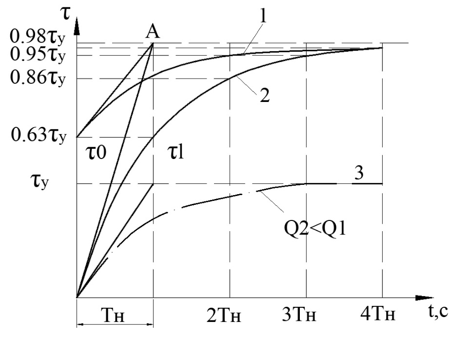𝜏 = 𝜏y (1 – e-t/Tн )+ 𝜏 0e-t/Tн , (4.4)