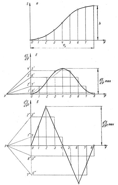 Закон движения толкателя задается в виде зависимости ускорения толкателя, так как именно по ускорению проще судить об условиях работы механизма.