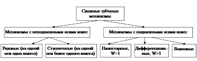 Цель: ознакомить студентов с классификацией многозвенных зубчатых механизмов, их областью применения, формулами для определения передаточного отношения сложных зубчатых механизмов, методикой синтеза эпициклических механизмов, силовым расчетом зубчатых передач.