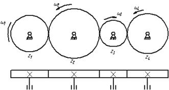 Рядовой зубчатый механизм – это последовательно соединенные несколько ступеней зубчатых колес, где на одном валу находится не более одного зубчатого колеса (рис. 3.5).