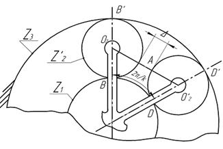 Условие сборки обеспечивает возможность зацепления всех сателлитных колес с центральными колесами при постоянстве угла между сателлитами. При этом следует обеспечить такое условие, чтобы колеса вошли в зацепление строго в точках В и В’, D и D’ (см. рис. 3.9).