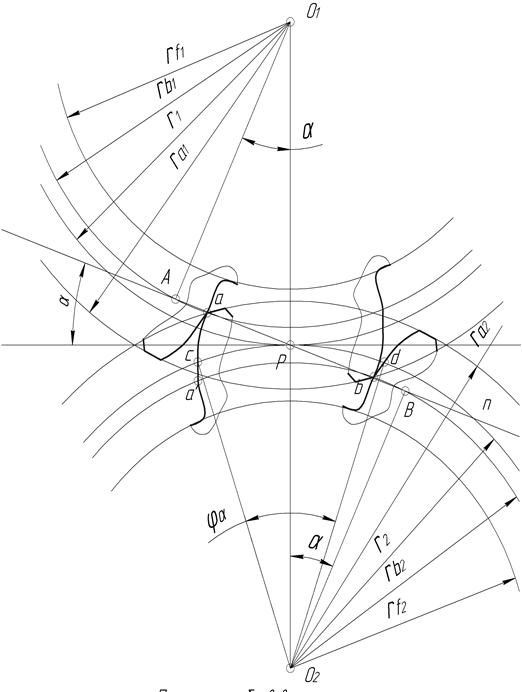 – угол зацепления; AB – теоретическая линия зацепления; ab – практическая линия зацепления