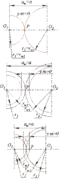 | положительные (составленные из колес с положительными смещениями или когда положительное смещение одного колеса больше отрицательного смещения другого) x1 > 0, x2 > 0илиx1 > | - x2 |, D1 > 0, D2 > 0или D1 > | - D2 |, y×m > 0, y > 0, aw> a, aw > a; | |
