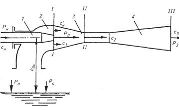 Процессы в водо-водяных струйных насосах. Основными процессами, происходящими в этих насосах являются: истечение рабочей воды из сопла; процессы смешения рабочей и перекачиваемой воды; процесс повышения давления. Рассмотрим содержание этих процессов.