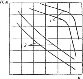 Оценку влияния изменения перечисленных выше параметров на подачу и напор струйного насоса производят по характеристике Н = f (и), которую получают на основании энергетического баланса (рис. 2.11).