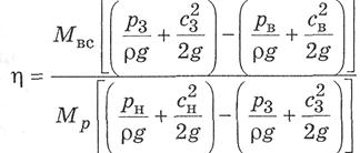 КПД водо-водяного струйного насоса определяется отношением полезно затраченной энергии, сообщенной перекачиваемой жидкости в насосе, к некоторой части подведенной энергии и выражается формулой
