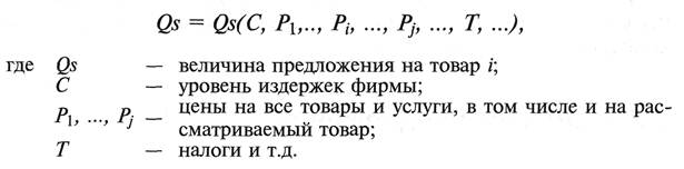 Величина предложения находится в тесной зависимости не только от цен, но и от других параметров рыночной конъюнктуры. Данную зависимость называют общей функцией предложения: