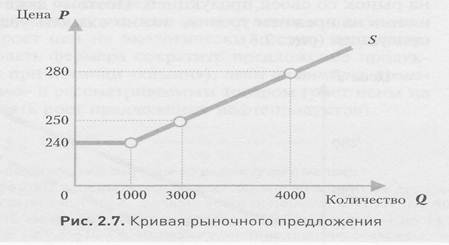 Для большинства конкретных рынков кривая предложения имеет возрастающий характер, поскольку чем выше рыночная цена, тем большее число фирм захотят производить и продавать данный товар. Так, более высокая цена может позволить существующим фирмам расширить свое производство путем привлечения дополнительной рабочей силы или увеличением парка станков.