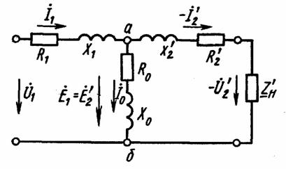 При этом параметры R0 и X0 следует выбирать так, чтобы в режиме холостого хода, когда ЭДС E1 практически равна номинальному напряжению U1, ток