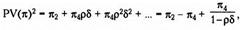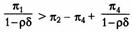 где π1 - прибыль, полученная фирмой, назначающей высокую цену, при условии, что другая фирма также назначает высокую цену; δ- дисконтирующий множитель, связанный со ставкой дисконтирования δ = 1/(1+i), I - ставка дисконтирования; ρ - вероятность в момент времени t того, что фирмы будут взаимодействовать в момент (t+1) - вероятность продолжения игры в будущем.