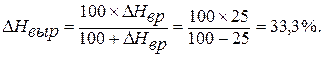 но процент увеличения нормы выработки не равен проценту уменьшения нормы времени. Например, если норма выработки увеличивается на 25% (ΔНвыр), то норма времени (ΔНвр) уменьшается на 20%: