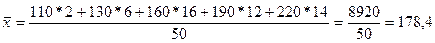 Фонд заработной платы по каждой группе рабочих равен произведению варианты на частоту, а сумма этих произведений дает общий фонд заработной платы всех рабочих.