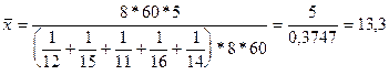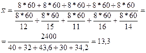Число деталей, изготовленных каждым рабочим, определяется отношением всего времени работы к среднему времени, затраченному на одну деталь. Тогда среднее время, необходимое для изготовления одной детали, равно: