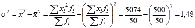 7) определяют разность между средним значением квадратов и квадратом средней арифметической, т.е. дисперсию