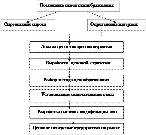 Ценообразование на предприятии представляет собой сложный процесс, состоящий из нескольких взаимосвязанных этапов: сбора и систематического анализа информации о рынке, обосновании основных целей ценовой политики предприятия на определённый период времени, выбора методов ценообразования, установления конкретного уровня цены и формирования системы скидок и надбавок к цене, корректировки ценового поведения предприятия в зависимости от складывающейся рыночной конъюнктуры.