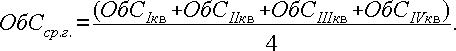 Среднегодовую сумму (среднегодовые остатки оборотных средств) находят как среднеарифметическую четырех квартальных сумм: