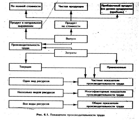 Система показателей производительности труда на предприятии содержит натуральные, трудовые и стоимостные измерители, а также частные, общие, многофакторные и другие (рис. 1).