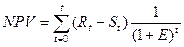 Где NPV- чистая текущая стоимость проекта; Rt – результаты (доход) на t-м шаге, руб.; St – затраты на t –м шаге, руб.