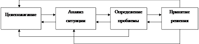 Цель и конкретная ситуация всегда не совпадают, не адекватны, отсюда вытекает понятие «проблемы», то есть того противоречия, которое необходимо разрешить принятием управленческого решения. Реализованное управленческое решение переводит систему управления в новое состояние.