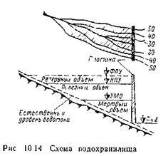 Водохранилища создаются путем устройства на реках или других водотоках плотин, повышающих уровни воды и образующих необходимой емкости водоемы (рис 10 14) На этом рисунке цифрами обозначены горизонтали поверхности местности.