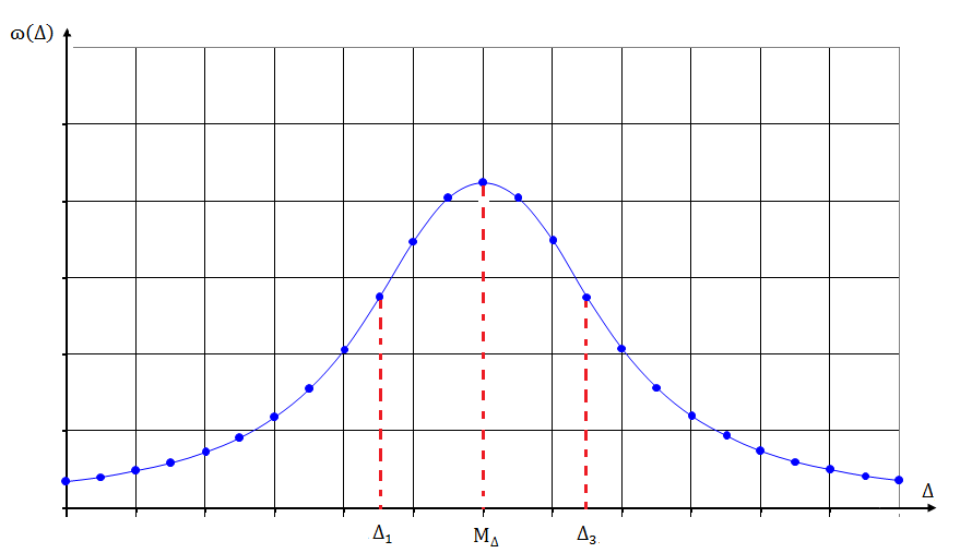 Для характеристики случайных погрешностей используют закон распределения вероятностей: ɷ(∆).