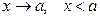 означет, что х остается левее точки а (