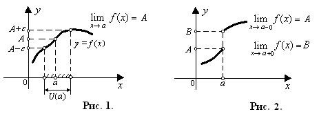 , т.е. в ее левой или правой окрестности, характеризуется ее односторонними пределами (рис. 2): левосторонний предел функции обозначается