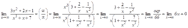 отношением двух многочленов или иррациональных функций, нужно в числителе и знаменателе вынести за скобки старшие степени х и сократить дробь на степень х.