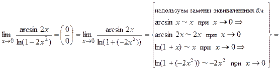 (здесь критический множитель – это (х – 0) = х, для его выделения использован принцип замены эквивалентных бесконечно малых и соотношения эквивалентностей (2) и (5)).