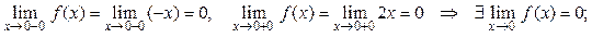 в силу непрерывности функций y = – х и y = 2 х. В точке х = 0 функция также непрерывна, т.к.