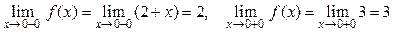 в силу непрерывности функций y = 2 + х и y = 3. В точке х = 0 функция терпит разрыв типа«скачок» (рис. 10), т.к.