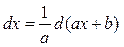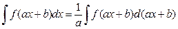 Наиболее часто прием подведения под знак дифференциала используется при линейной замене переменной интегрирования: