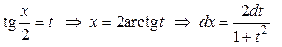 Для нахождения интегралов вида , где R – рациональная функция (не содержащая sin х и cos x под знаком корней), используют универсальную подстановку: , которая сводит к интегралу от рациональной функции, т.к.