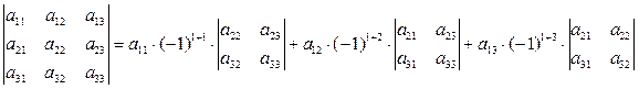 т.е. определитель равен сумме произведений элементов первой строки на их алгебраические дополнения. Аналогично можно записать разложение определителя по любой другой строке или столбцу.