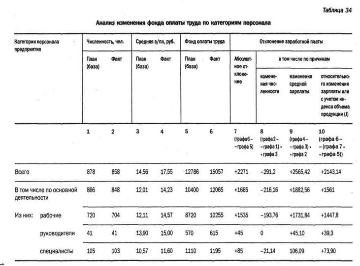 Исходя из данного алгоритма, анализируем изменения фонда заработной платы в целом и по категориям работников (таб. 34).