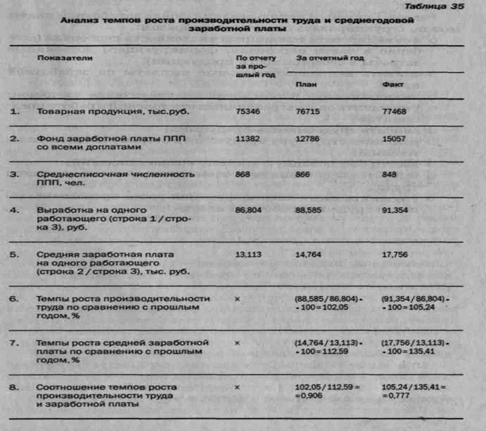 При расчете темпов роста для характеристики производительности труда берется среднегодовая выработка одного работника ППП, для заработной платы — средняя заработная плата одного работника ППП с учетом всех доплат.