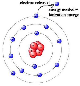 Рисунок 11.3 Simple diagram of the releasing of an electron to ionize a neutral atom