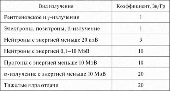 Эквивалентная доза рассчитывается путем умножения значения поглощенной дозы на специальный коэффициент — коэффициент относительной биологической эффективности (ОБЭ) или коэффициент качества. Значения коэффициента для различных видов излучений приведены в табл. 11.1.