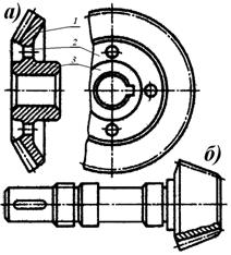 – обод – часть зубчатого колеса, несущая зубчатый венец (1 на рис. 5.1, г и 5.2, а); наиболее часто обод совмещают с зубчатым венцом, но иногда их выполняют раздельными (например, из разных материалов);