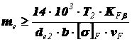 в котором m – модуль зацепления (для конических колес следует использовать внешний модуль me (mte)), b – ширина зубчатого венца.