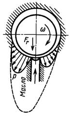Рис. 10.5. Гидродинамическая смазка подшипника скольжения |