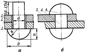 Рис. 12.1. Заклёпочное соединение: а –в процессе сборки; б –в собранном виде