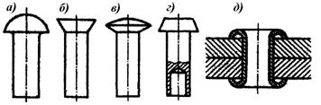 Рис. 12.3. Некоторые виды заклёпок (пояснения в тексте) |