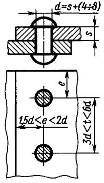 При соединении листов равной толщины (все размеры в мм) диаметр заклёпки