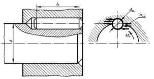 Цилиндрическая шпонка, выдерживающая в процессе работы соединения напряжения смятия, имеет, как правило, достаточную прочность и на срез. Поэтому подбор диаметра шпонки производят по напряжениям смятия