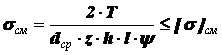 Напряжения смятия на контактных поверхностях деталей, входящих в соединение