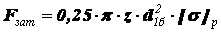 где Fзат – усилие затяжки болтов, Н; d – диаметр соединения (вала), мм; f - коэффициент трения для материалов деталей, входящих в соединение. В свою очередь усилие затяжки болтов зависит от прочности каждого из них
