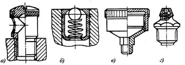 Рис. 15.1. Маслёнки для периодической смазки: а, б – жидкими маслами; в, г – консистентной смазкой. |