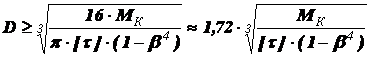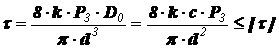 Торсионные валы устанавливаются таким образом, чтобы исключить на них воздействие изгибающей нагрузки. Наиболее распространенным является соединение концов торсионного вала с взаимно подвижными в угловом направлении деталями при помощи шлицевого соединения. Поэтому материал торсионного вала работает в чистом виде на кручение, следовательно для него справедливо условие прочности (17.7). Это означает что наружный диаметр D рабочей части полого торсиона можно подобрать по соотношению
