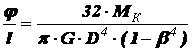 При известных диаметрах рабочей части торсиона его удельный угол закручивания (угол поворота вокруг продольной оси одного конца вала относительно другого его конца, отнесенный к длине рабочей части торсиона) определится равенством